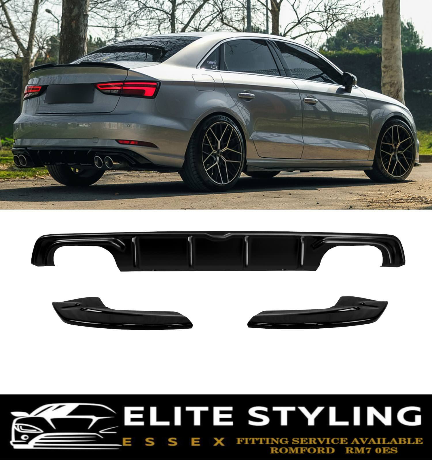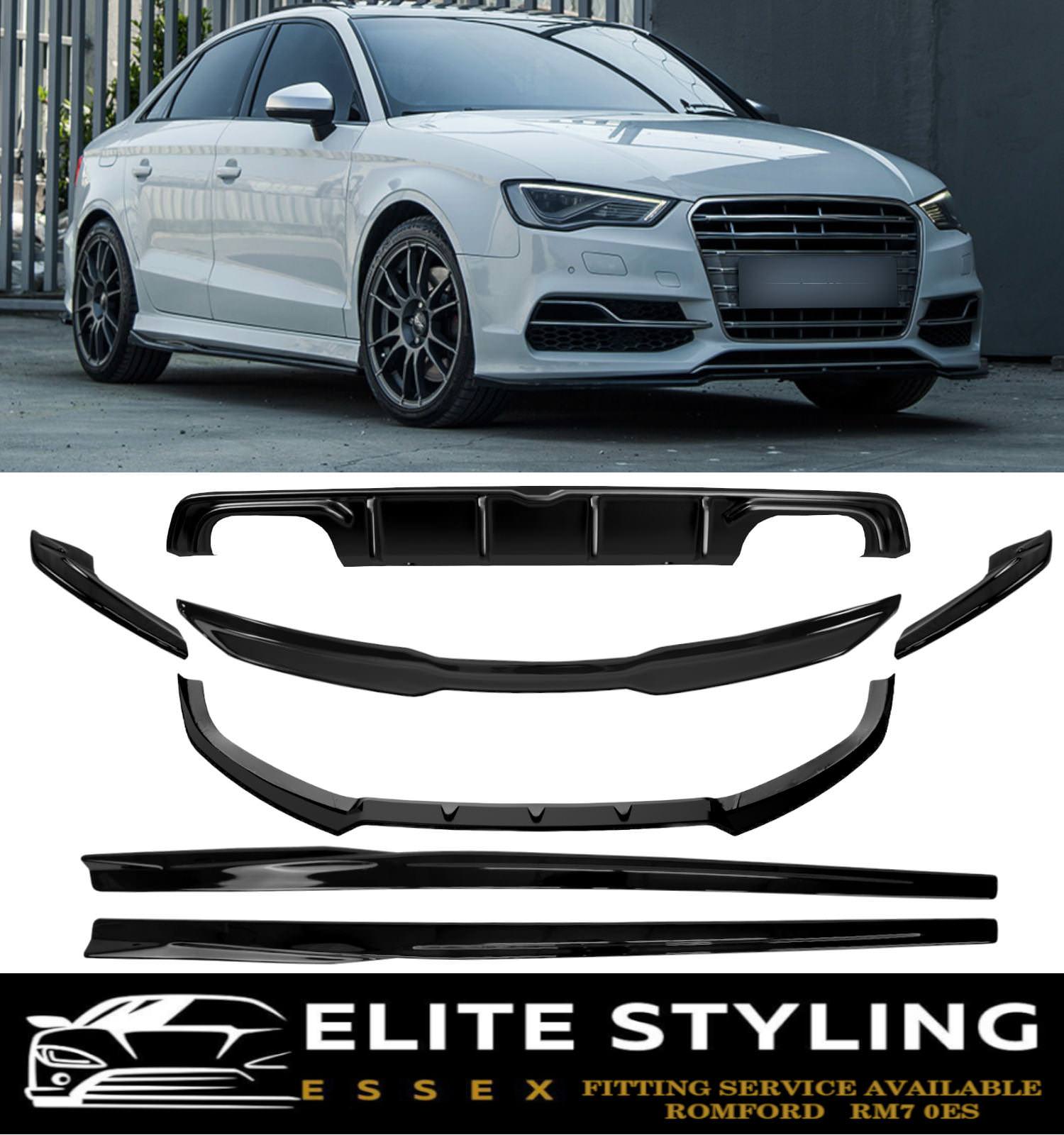 AERO BODY KIT SPLITTER DIFFUSER SKIRTS GLOSS BLACK AUDI A3 S-LINE & S3 8V SALOON